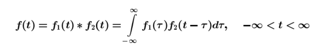 - Signal and System 관점에서 두개의 신호 f_1(t)와 f_2(t)로 부터convolution은 아래와 같이 정의