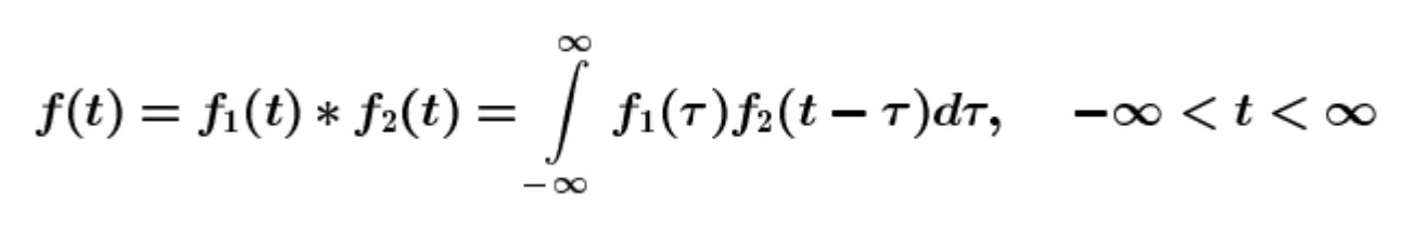 - 두 개의 함수 f와 g가 있을 때, 두 함수의 합성곱을 수학 기호로는 다음과 같이 표시한다.