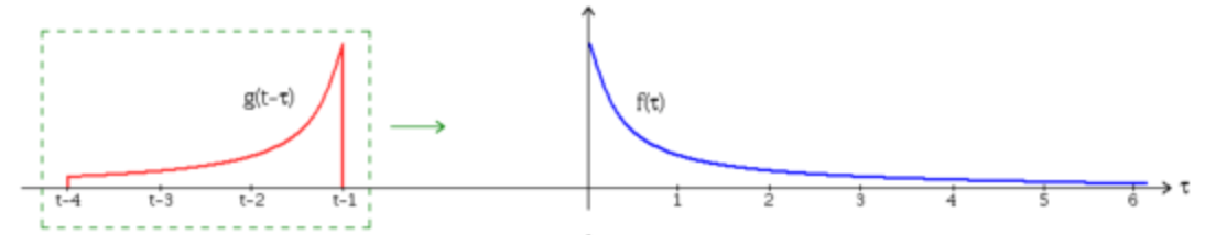 - Step 1 : 두 함수 중 하나를 선택해 τ축에 대해 반전(time-invert) 시킨다.