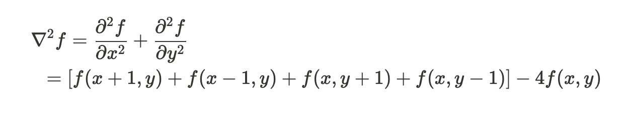 - x축과 y축에 대한 각각의 이차미분을 수행하고, 각 방향에 대한 이차미분 결과를 합친다.