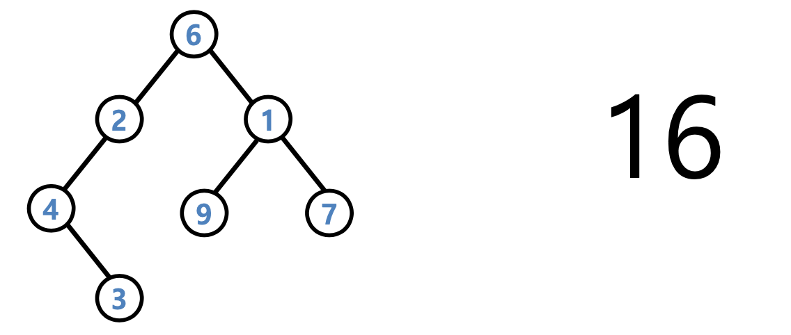 return root‐>weight + leftWeight >= rightWeight ? leftWeight : rightWeight;
